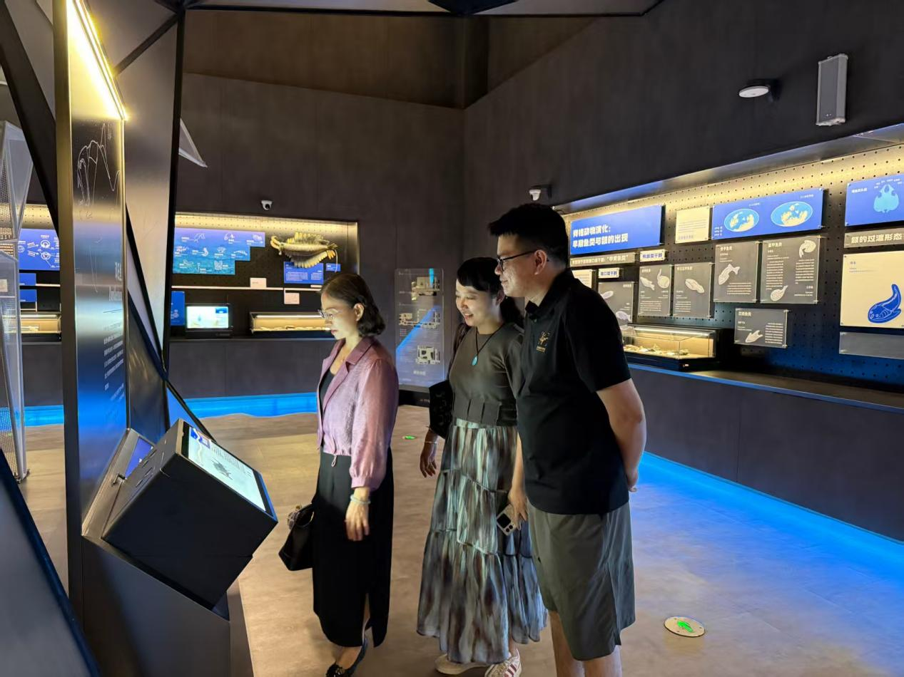 公司技术总监何关引导参观了"恐龙奥秘科学馆",将动画互动在科普中的应用进行了详细的讲解。随后,公司董事长梁文章参加座谈交流,双方重点研讨当下AI 技术对动画行业的革新,明确了校企合作路径。双方计划探索建设AI 动画微专业,采用"英才班"教学,构建"学训一体"闭环的创新模式。