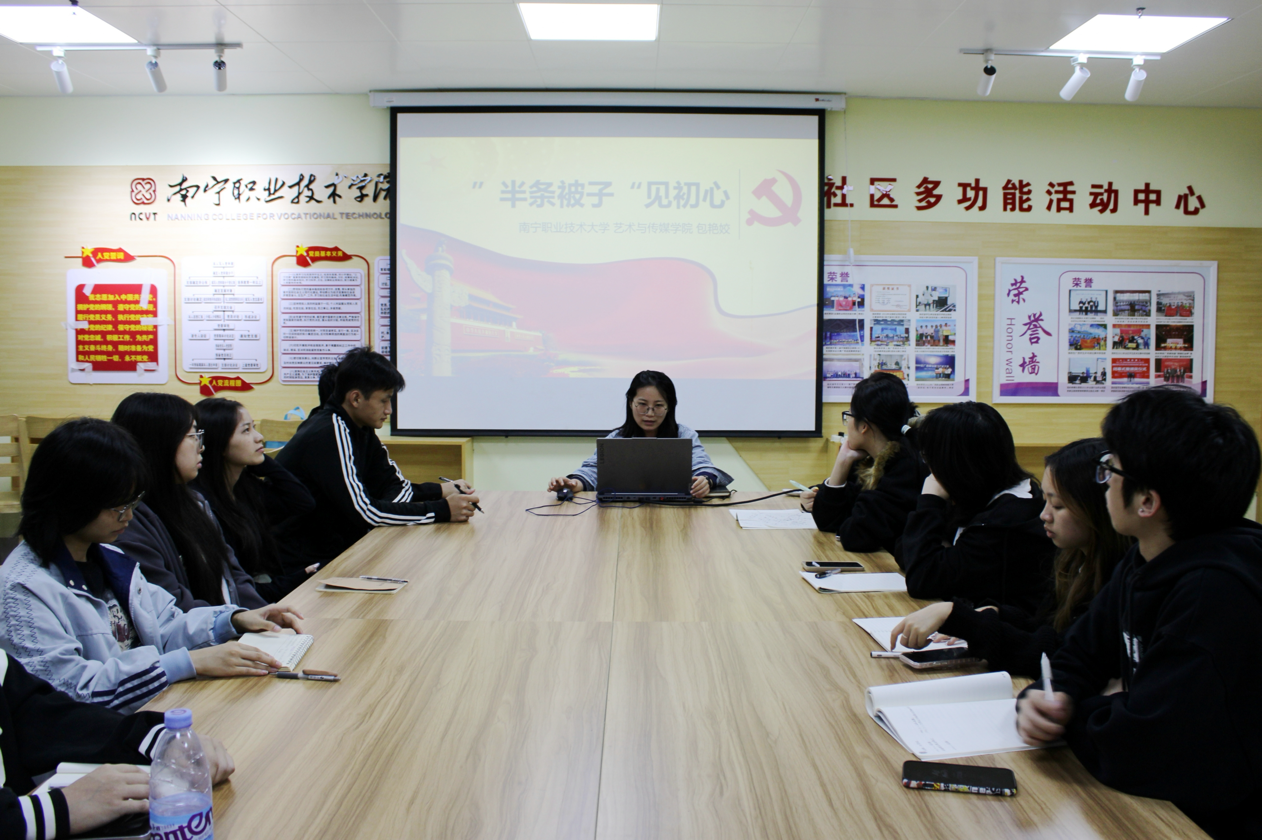 10月22日,艺术与传媒学院2025年秋季学期团校培训班第三次主题团课在19栋一站式学生社区开课。本次课程以“‘半条被子’见初心”为主题,由学院专职辅导员包艳姣主讲,全体入团积极分子参加。