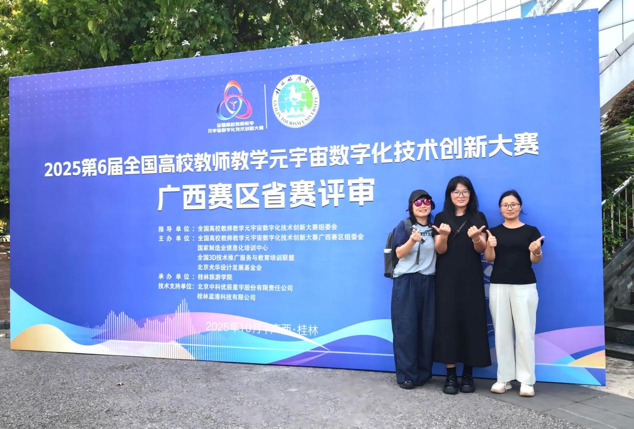 10月19日,第6届全国高校教师教学元宇宙数字化技术创新大赛(广西赛区)选拔赛在桂林市举办。艺术与传媒学院2支参赛队在网络评审环节突围而出,经现场选拔环节激烈角逐,环境艺术设计专业作品《解密侗筑:侗族传统建筑设计虚拟仿真实验》荣获一等奖并晋级国赛,服装与服饰设计专业作品《AI赋能民族潮玩服饰创新设计与元宇宙教学实践》荣获二等奖。