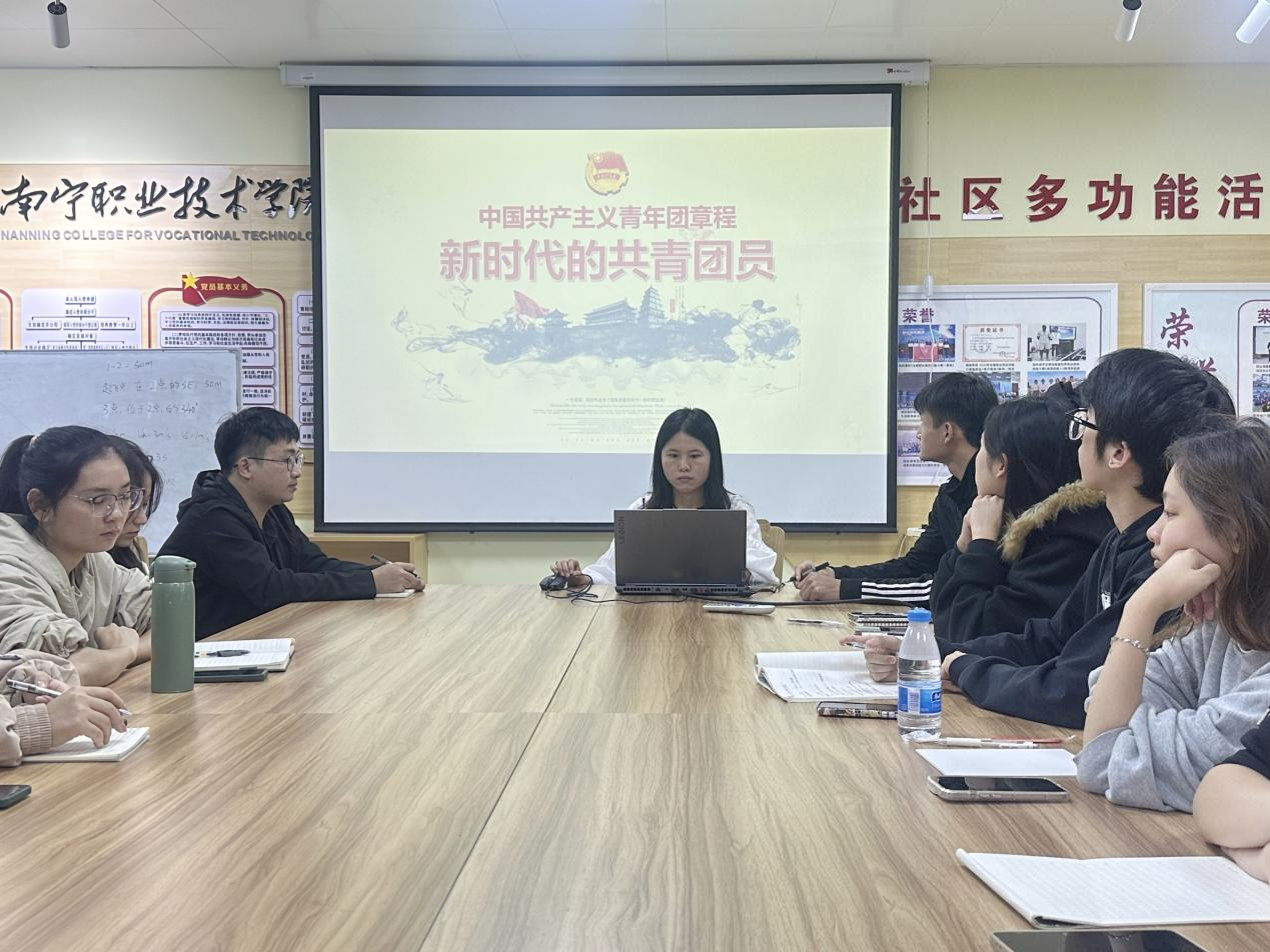 10月23日,艺术与传媒学院2025年秋季学期团校培训班第四次主题团课在19栋“一站式”学生社区开课。本次课程以“学习中国共产主义青年团章程”为主题,学院专职辅导员黄金梅主讲,全体入团积极分子参加。