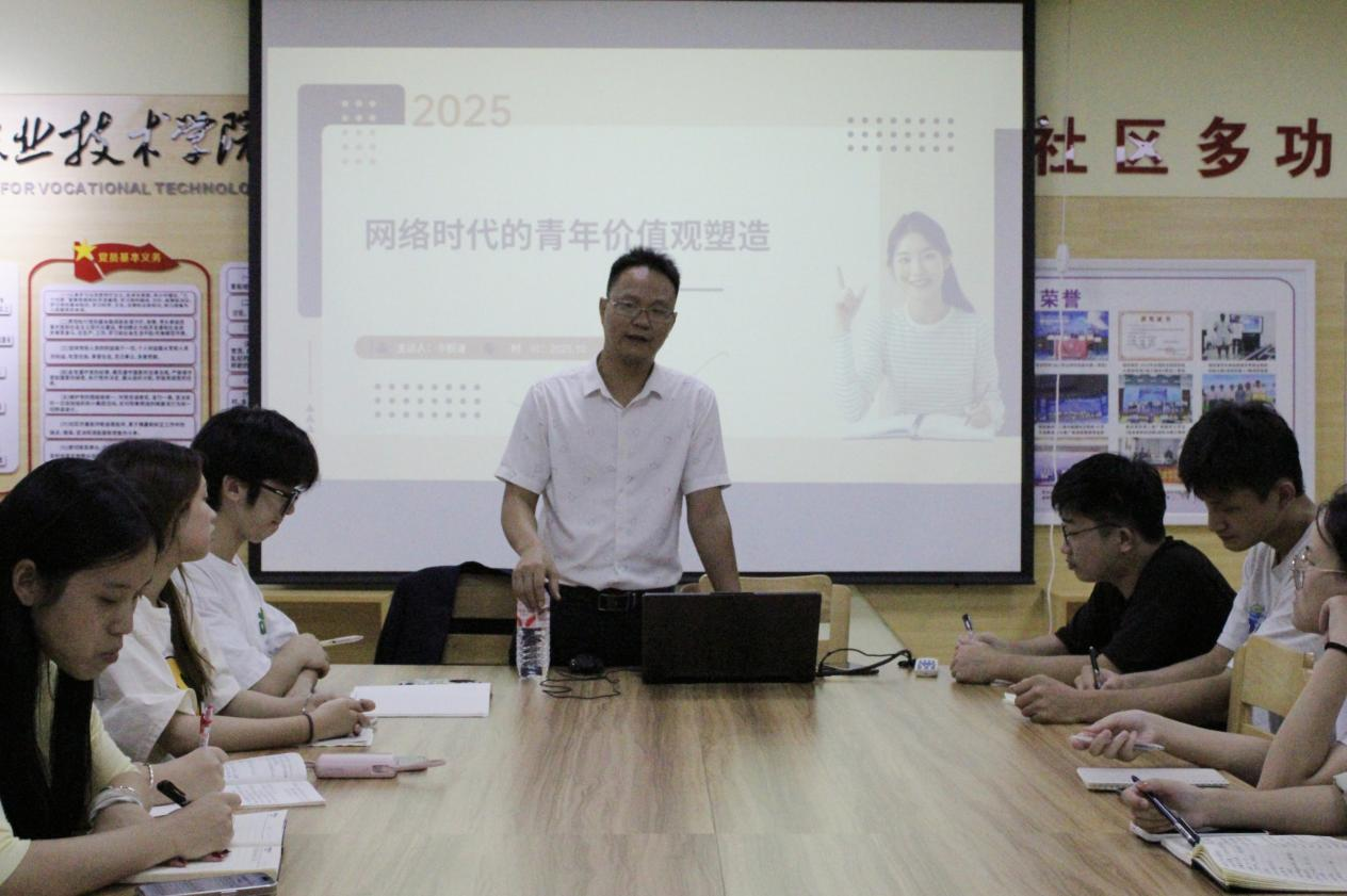 10月29日,艺术与传媒学院团校培训班第八次团课在19栋一站式学生社区开课。本次课以《“网络时代的青年价值观塑造”——探讨网络对青年价值观的影响及应对策略》为主题,学院党委副书记李积谦担任主讲,全体入团积极分子参加。