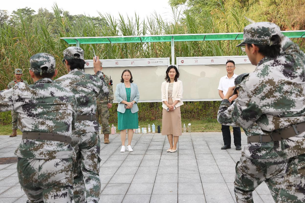 10月29日,艺术与传媒学院党委书记苏丽、院长陈秀泉、党委副书记李积谦一行走进训练场,开展了一场温暖人心的慰问活动,为参训新生送去了学院的殷切问候与鼓励。