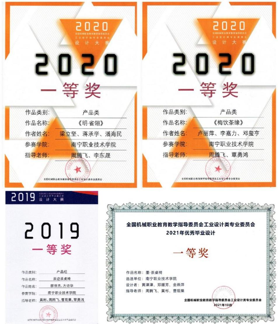 全国机械职业教育教学指导委员会工业设计类专业委员会设计大赛累计4次获一等奖