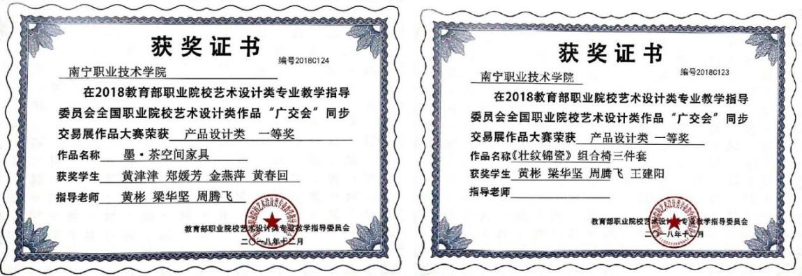 全国职业院校艺术设计类作品“广交会”同步交易展作品大赛累计2次获一等奖