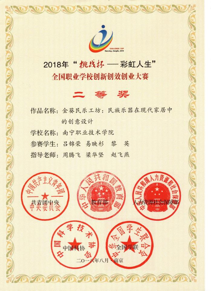 4.“挑战杯——彩虹人生”全国职业学校创新创效创业大赛获二等奖;
