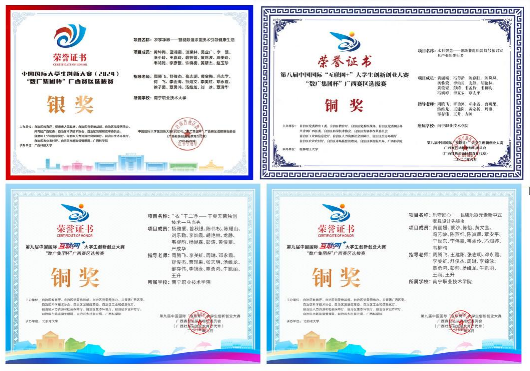 中国国际“互联网+”大学生创新创业大赛广西赛区选拔赛多次获银奖、铜奖