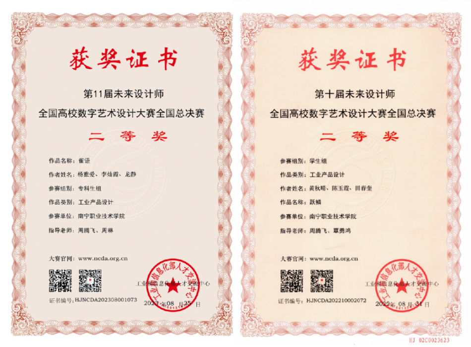 3.未来设计师·全国高校数字艺术设计大赛(NCDA)全国总决赛累计2次获二等奖、1次三等奖;
