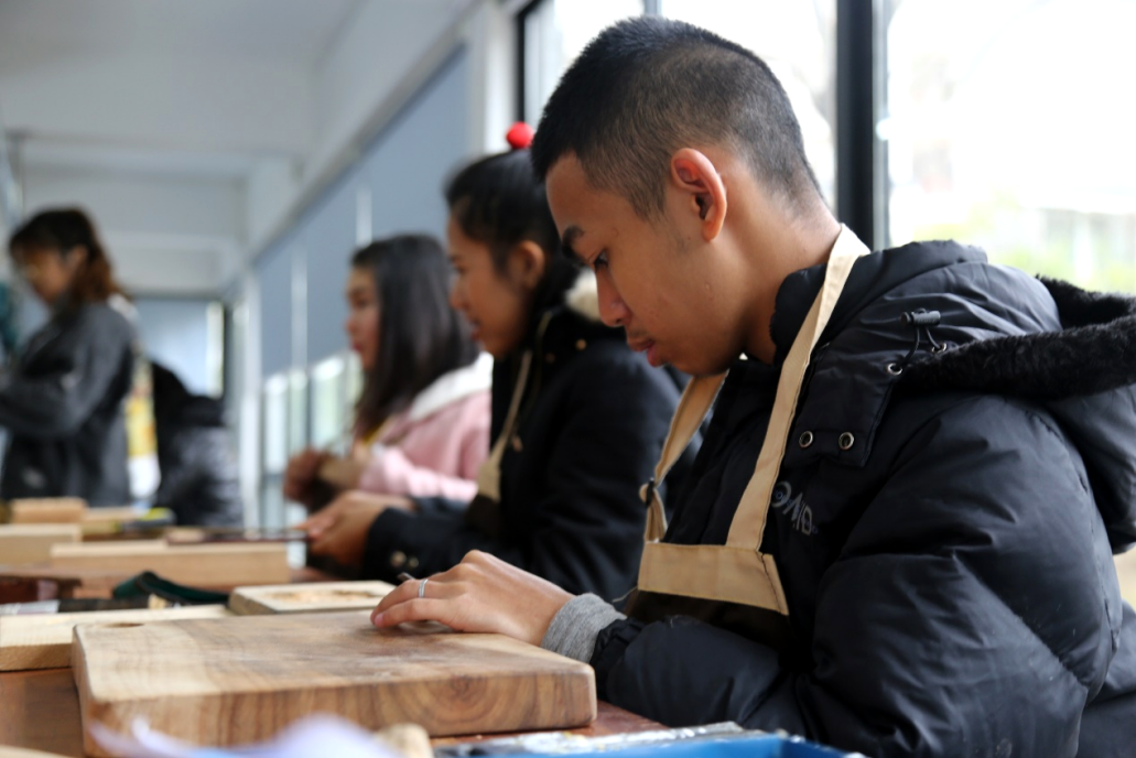 泰国曼谷北部大学学生在家具艺术设计专业实训室参加中泰文化交流活动