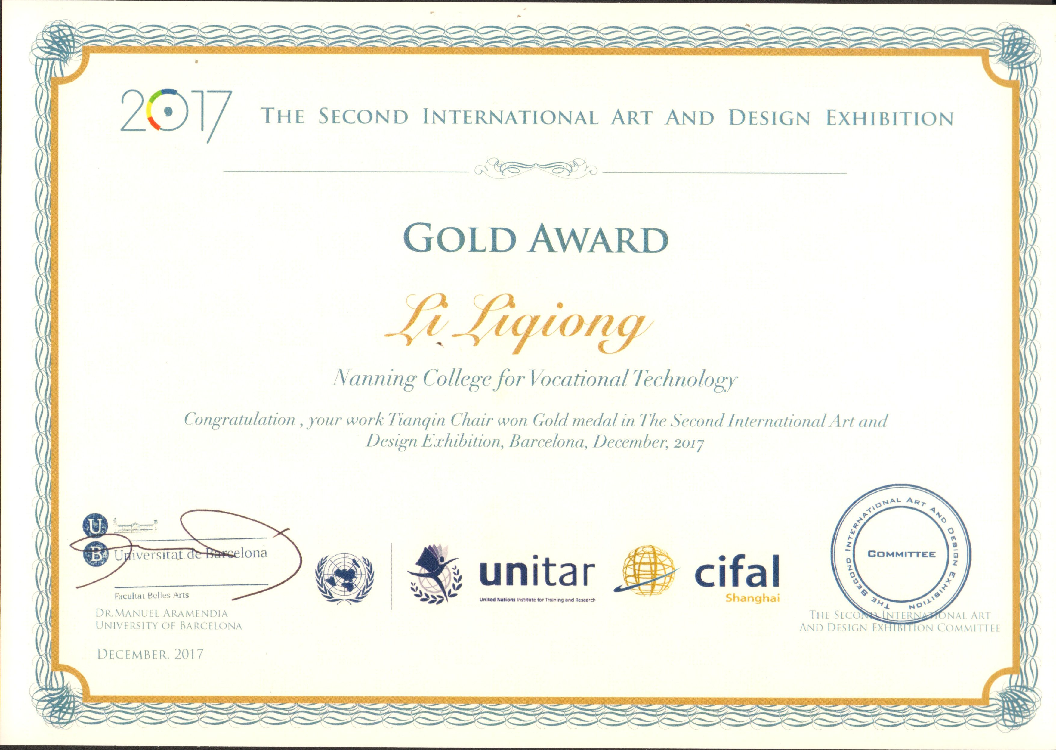 第二届国际艺术设计作品展获金奖